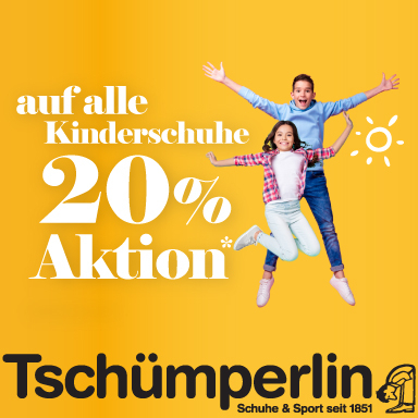 Profitieren Sie jetzt von 20% Rabatt auf alle Kinderschuhe bei Tschümperlin! Das Angebot ist gültig bis am 21. März 2026, ausgenommen Wanderschuhe und bereits reduzierte Artikel.