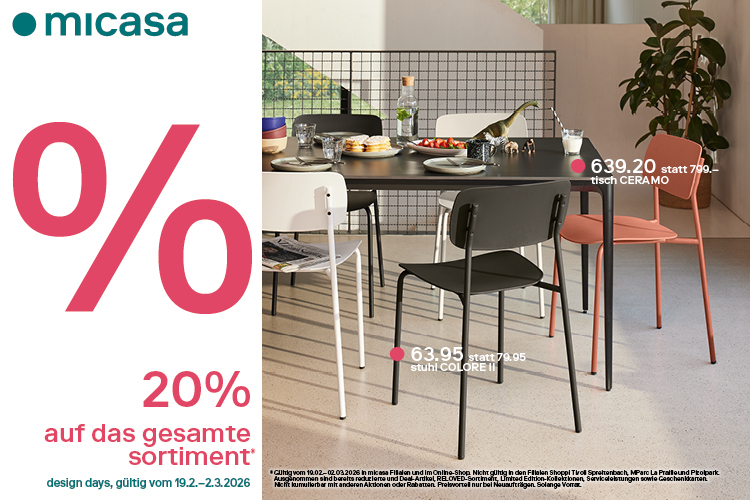 Gültig vom 19.02. – 02.03.2026 in micasa Filialen und im Online-Shop.