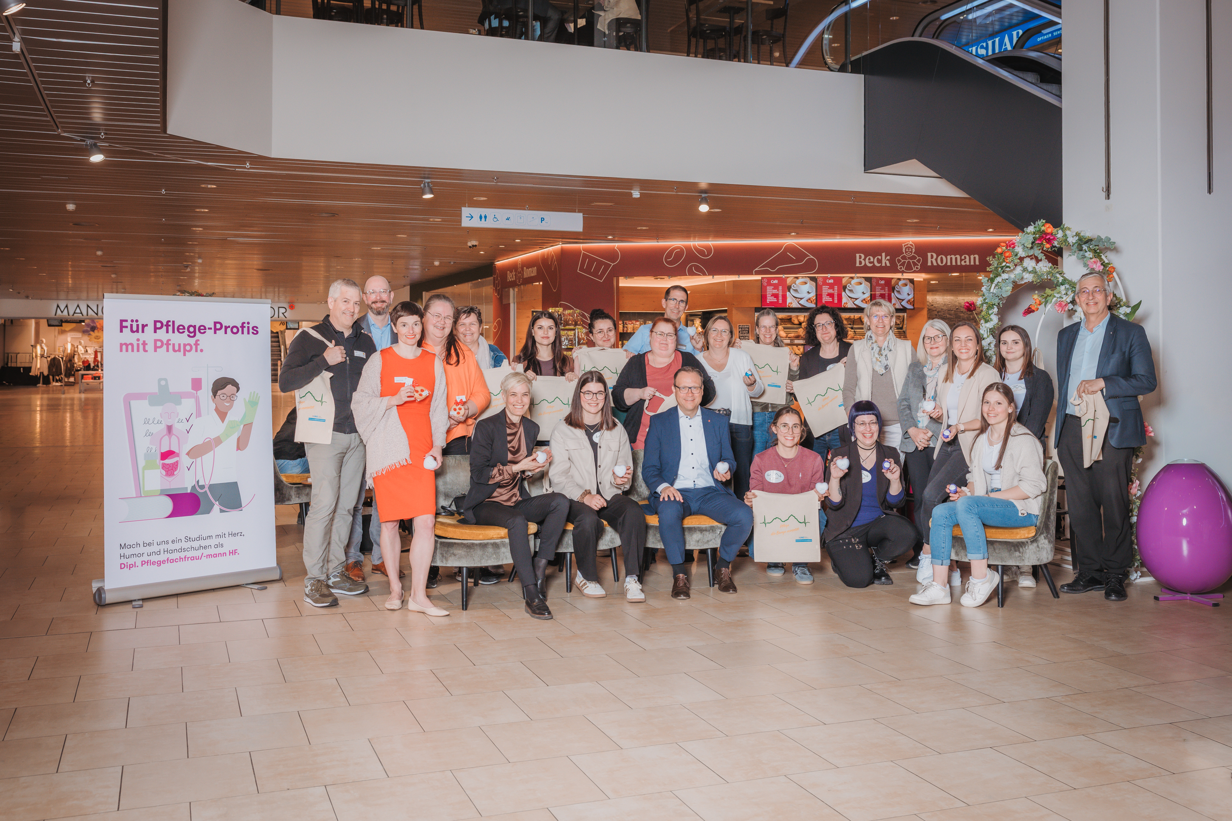 Gemeinsamer Stand im Mythencenter macht Pflegeberufe sichtbar