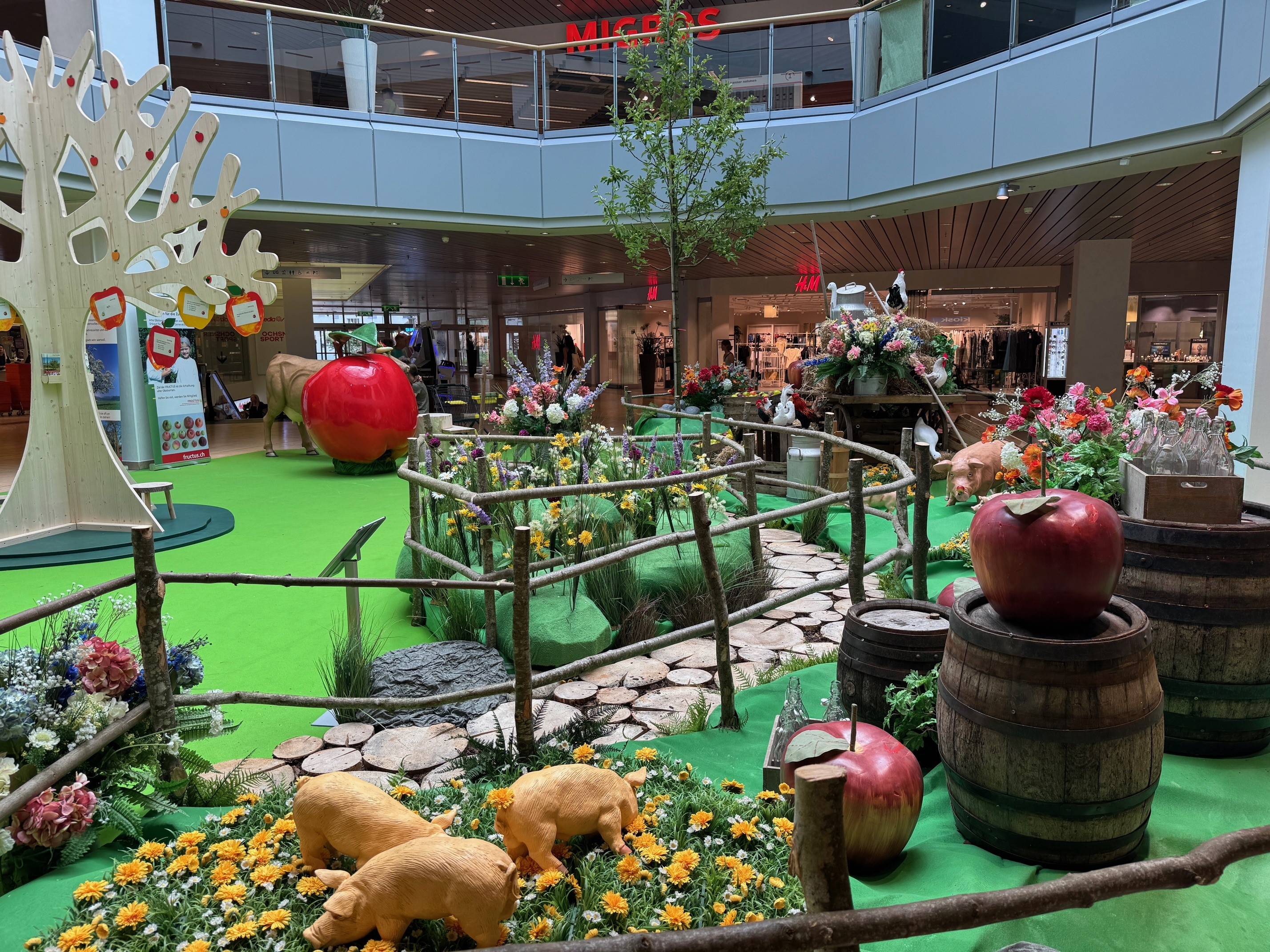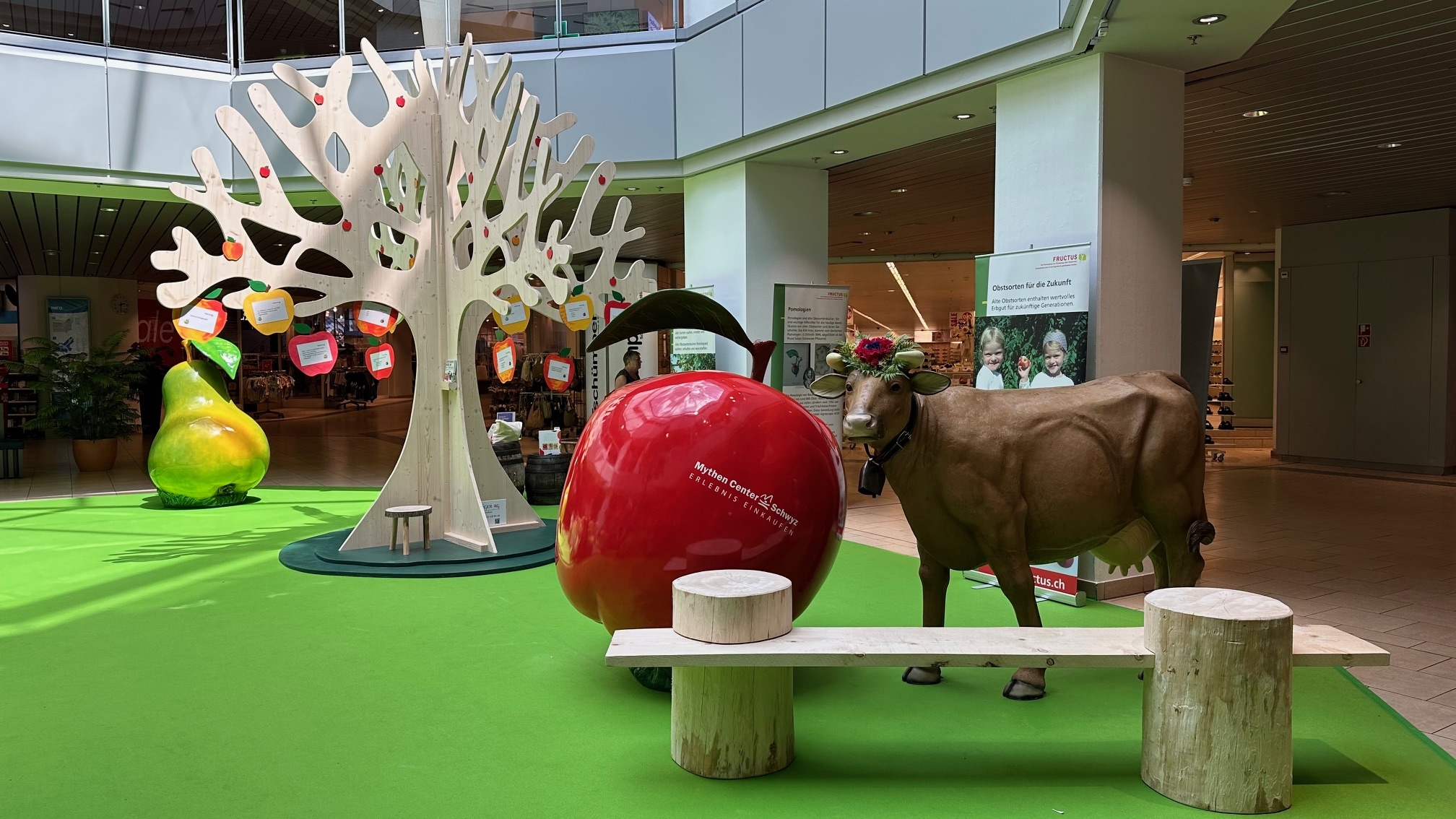 Mitten in der Mall war die Sommerdekoration „Verführerisches Früchteparadies“ aufgebaut. Als weitere Attraktion informierte FRUCTUS (Vereinigung zur Förderung alter Obstsorten) über die Obstsortenvielfalt und Hochstammkultur.